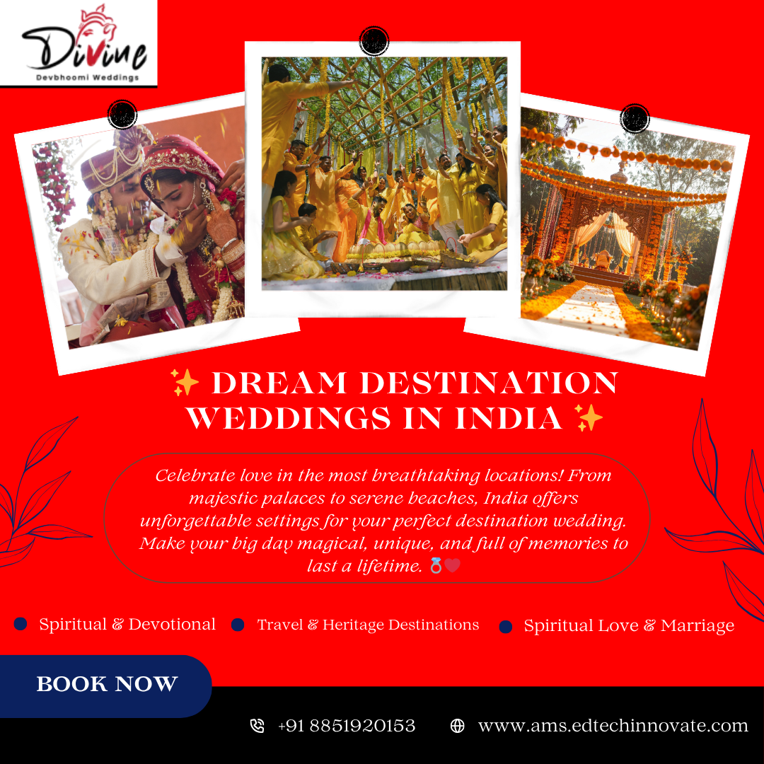 A wedding is not just a ceremony — it's a sacred beginning, a celebration of love that binds two souls for eternity. And what better place to celebrate this beautiful journey than India — a land known for its cultural richness, scenic beauty, and timeless traditions? 🇮🇳