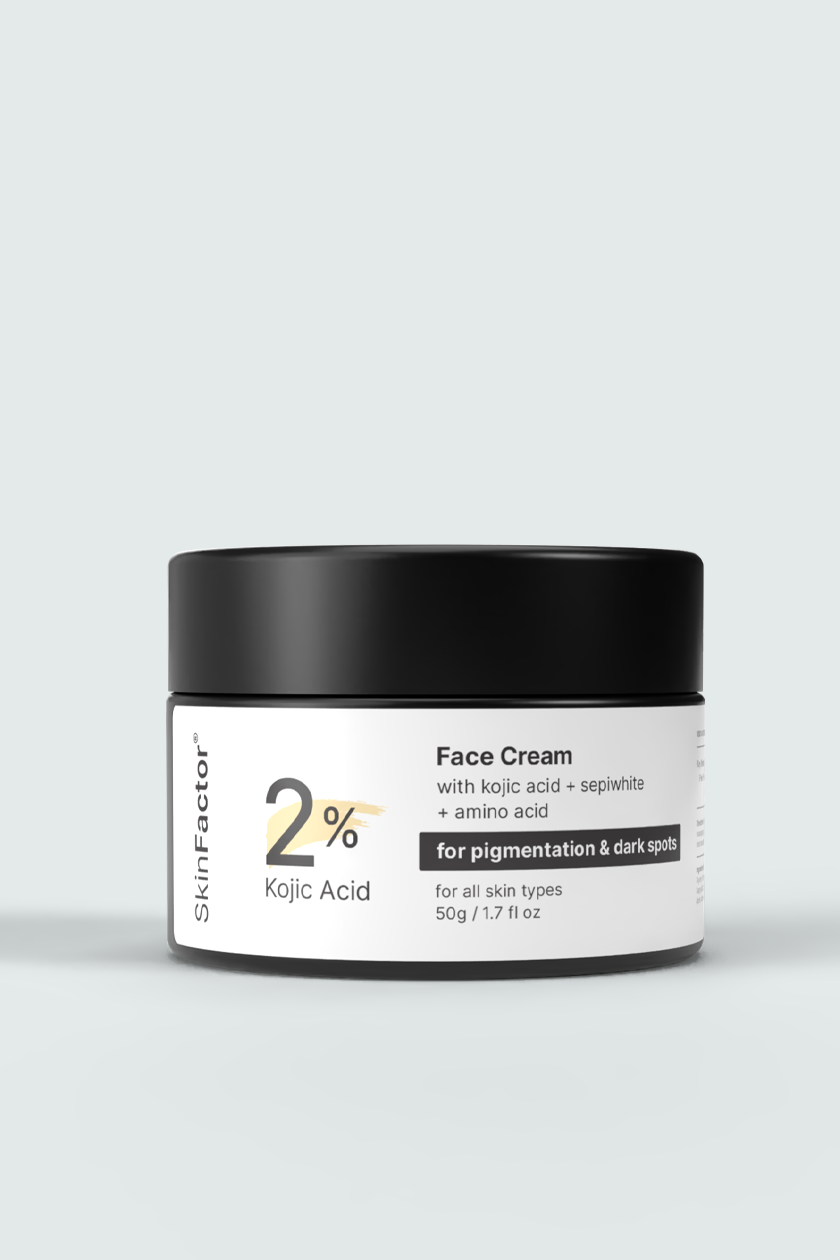 Skinfactor Kojic Acid Cream: Works directly on melanin production, making it highly effective for stubborn, deep, or long-standing pigmentation like melasma or acne scars.