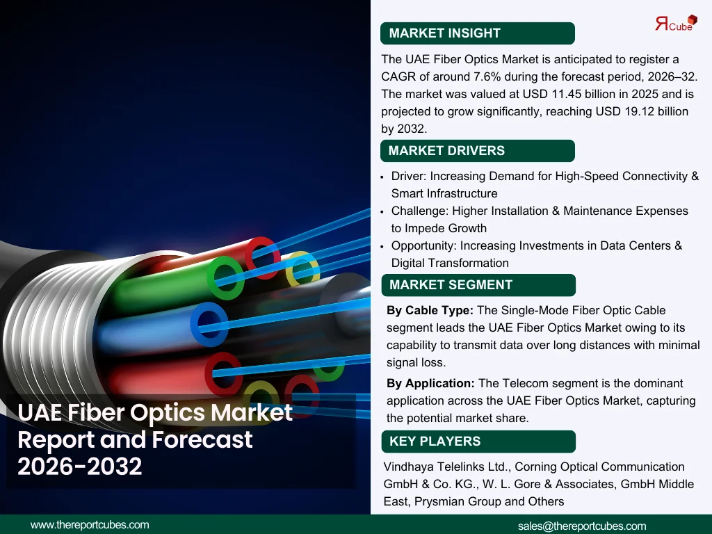 The UAE Fiber Optics Market is anticipated to register a CAGR of around 7.6% during the forecast period, 2026–32.