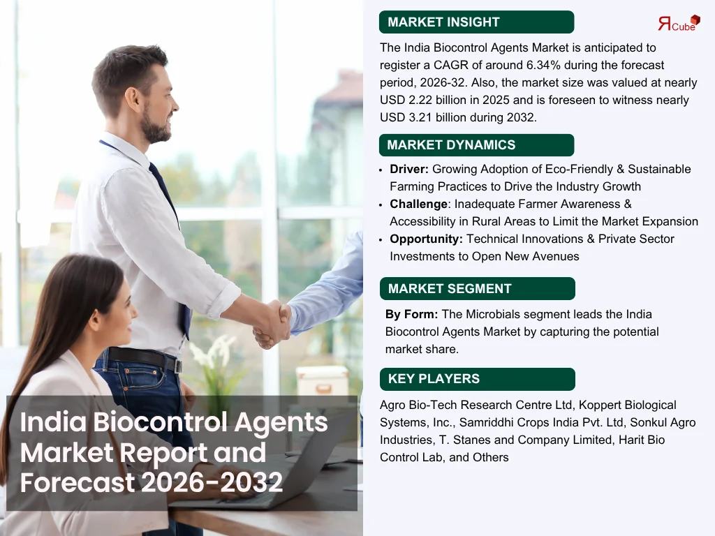 The India Biocontrol Agents Market is anticipated to register a CAGR of around 6.34% during the forecast period, 2026-32.