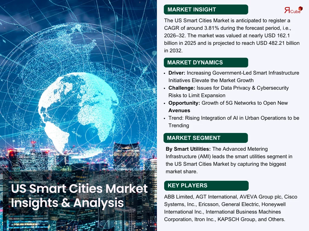 The US Smart Cities Market is anticipated to register a CAGR of around 3.81% during the forecast period, i.e., 2026–32.
