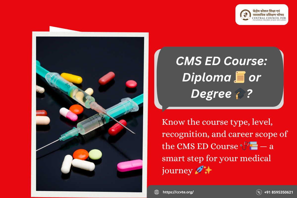 In simple terms, the CMS ED course equips you with practical skills in community medical services, management of essential drugs, and public health interventions. Students completing this program earn a CMS ED certificate, which validates their expertise and allows them to serve in hospitals, NGOs, or even start their own clinics.