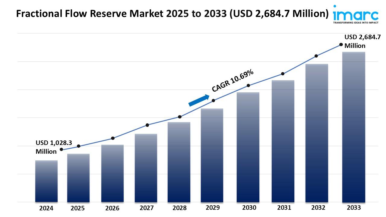The fractional flow reserve market is experiencing rapid growth, driven by increasing prevalence of cardiovascular diseases, technological advancements and product innovation, and supportive government policies and reimbursement approvals. According to IMARC Group's latest research publication, "Fractional Flow Reserve Market: Global Industry Trends, Share, Size, Growth, Opportunity and Forecast 2025-2033", offers a comprehensive analysis of the industry, which comprises insights on the global fractional flow reserve market share. The global market size reached USD 1,028.3 Million in 2024. Looking forward, IMARC Group expects the market to reach USD 2,684.7 Million by 2033, exhibiting a growth rate (CAGR) of 10.69% during 2025-2033.